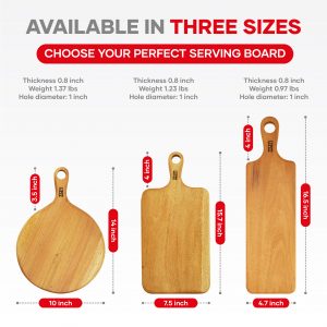 Enjoy cooking your favorite meals with these wood cutting boards! Cooking becomes a pleasure when there’s an accessory for every cutting and chopping task. UPIT is happy to introduce an appetizer serving tray – use these boards for cooking small meals, party platters for large companies, and middle-size family dinners. This DIY serving wooden board is made of premium and high-class Mahogany wood material, which can withstand long-lasting use. This cheese serving board is durable, wear-resistance, and water resistance. The non-slip design of wooden cutting boards for kitchen brings much convenience to you. Wooden chopping board has a smooth surface that won’t hurt your hands because of its exquisite workmanship. Our wood serving board has a smooth and splinter-free surface that will remain smooth even after years of using and washing. The serving appetizer board has a hanging hole design so you can hang and store this wooden cheese board to save space. You can use cheese cutting board to cut any kind of meat, fish, or veggies, or as wooden board for serving appetizers, cheese, fruits, or charcuterie. Wooden board serving is great as wood cutting boards for the kitchen, cheese platters, or charcuterie boards.